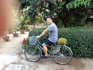 And say if you love to eat jackfruit and your aunt gave you a juicy one to take home…Rickety bike to the rescue! Wet a couple dried banana stems, use them to tie down the thorny thing to the back seat and pedal it home!